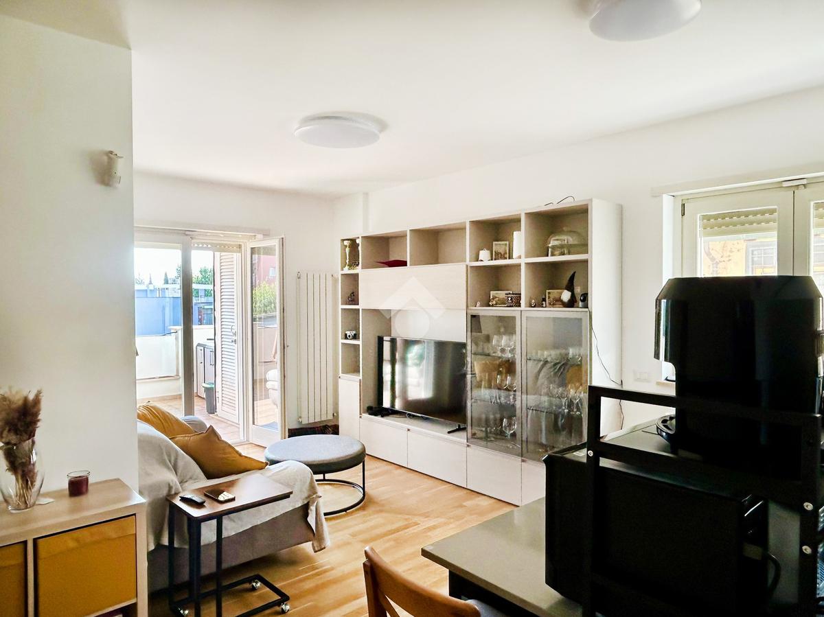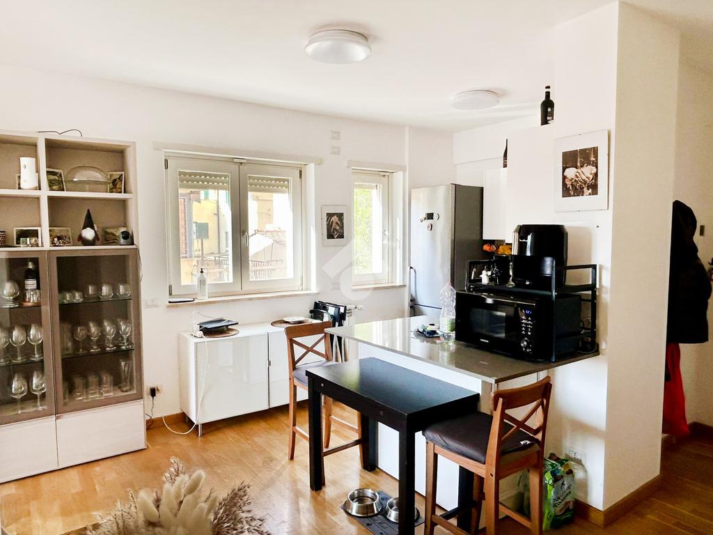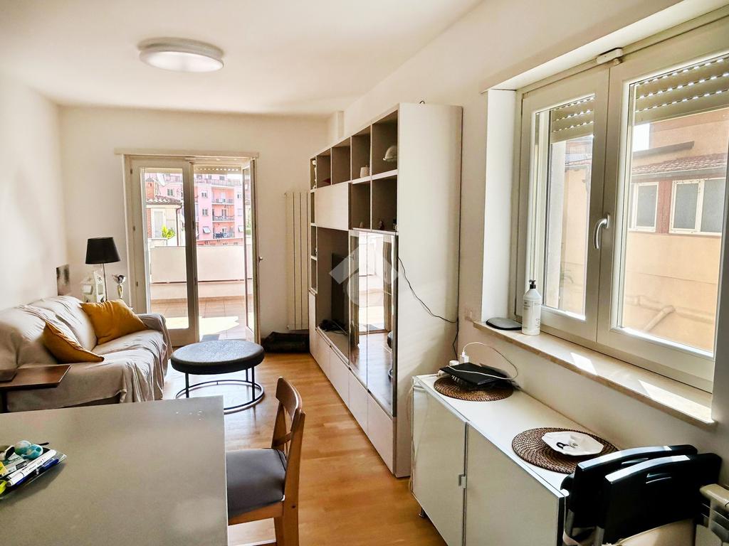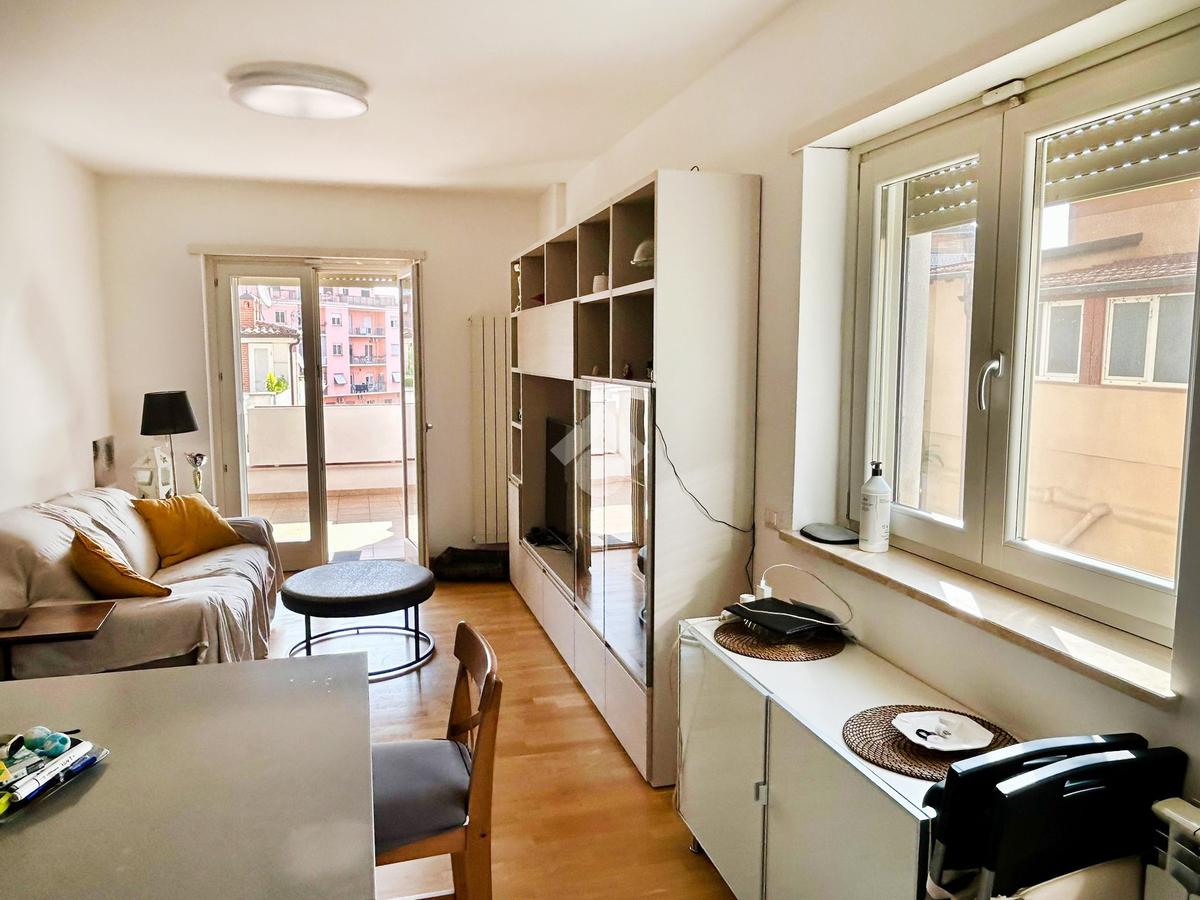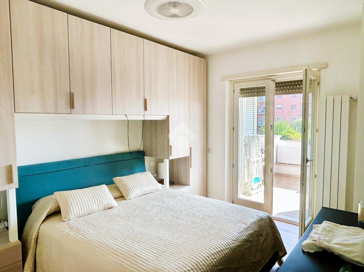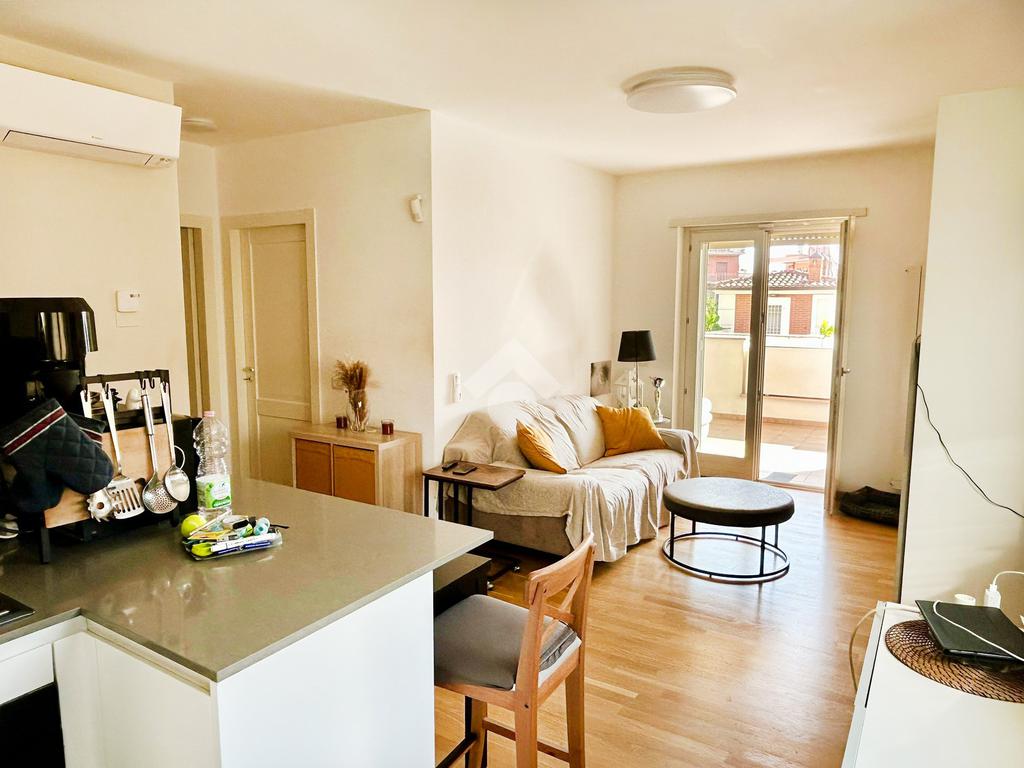 L’appartamento in ottimo stato interno si compone da un ingresso con soggiorno a vista e angolo cottura, camera matrimoniale, camera da letto, doppi servizi entrambi con box doccia e infine un ampio terrazzo con tende da sole elettriche e serrande elettriche in tutti gli ambienti di casa.