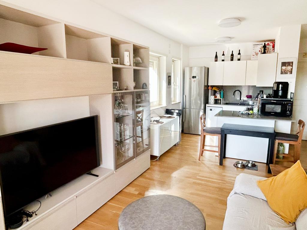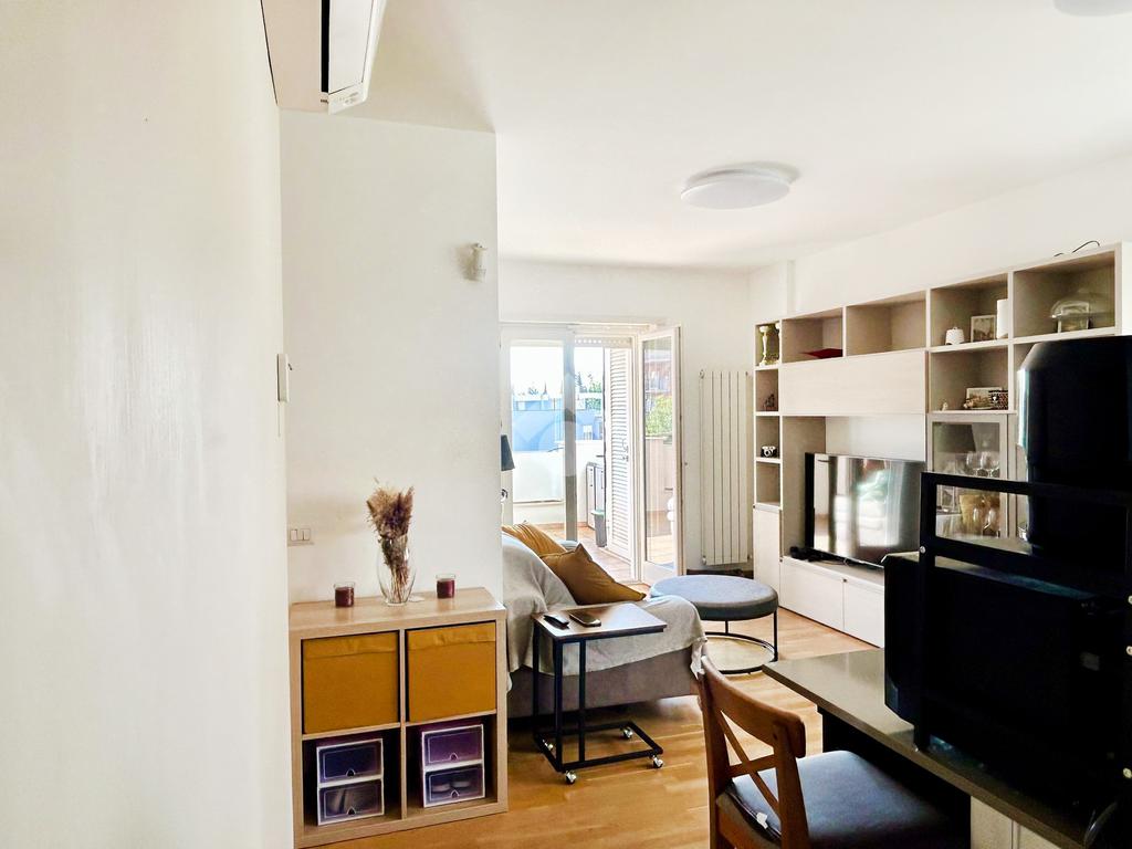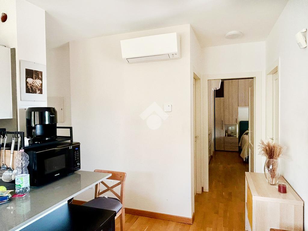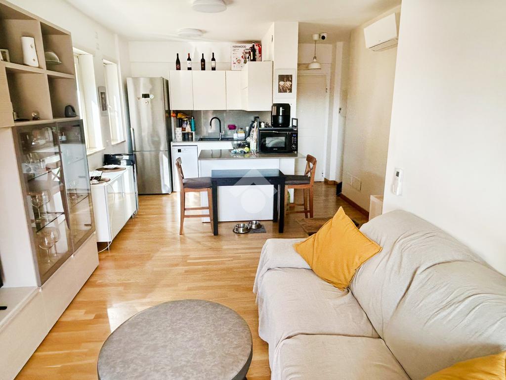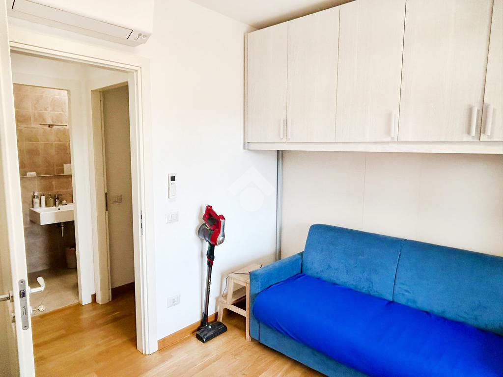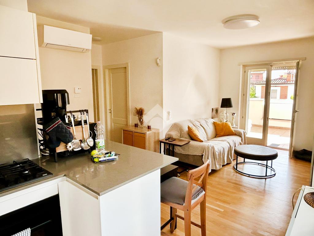 L’appartamento in ottimo stato interno si compone da un ingresso con soggiorno a vista e angolo cottura, camera matrimoniale, camera da letto, doppi servizi entrambi con box doccia e infine un ampio terrazzo con tende da sole elettriche e serrande elettriche in tutti gli ambienti di casa.