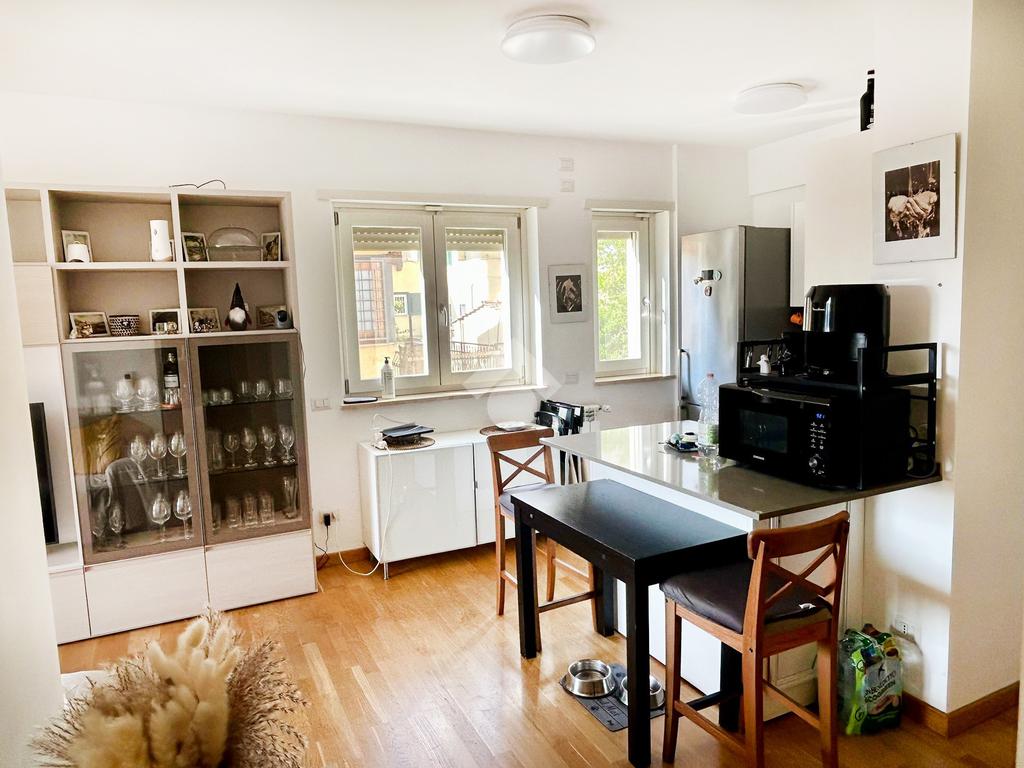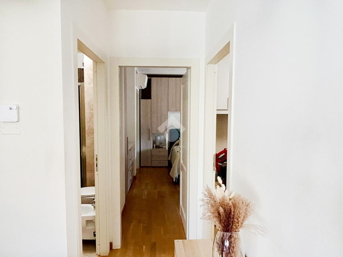 L'appartamento ben rifinito . 2 anni fa, con parquet, porta blindata, condizionatori Daikin in tutti gli ambienti, infissi in legno con doppio vetro e zanzariere.