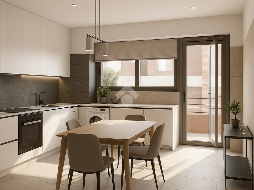 Internamente l'immobile è composto da un ingresso che conduce ad un ampio disimpegno, cucina abitabile con balcone, un soggiorno/pranzo con ulteriore balcone, e la zona notte con una camera matrimoniale, una seconda camera da letto con balconcino e infine un bagno finestrato. Tutti gli infissi sono dotati di grate.