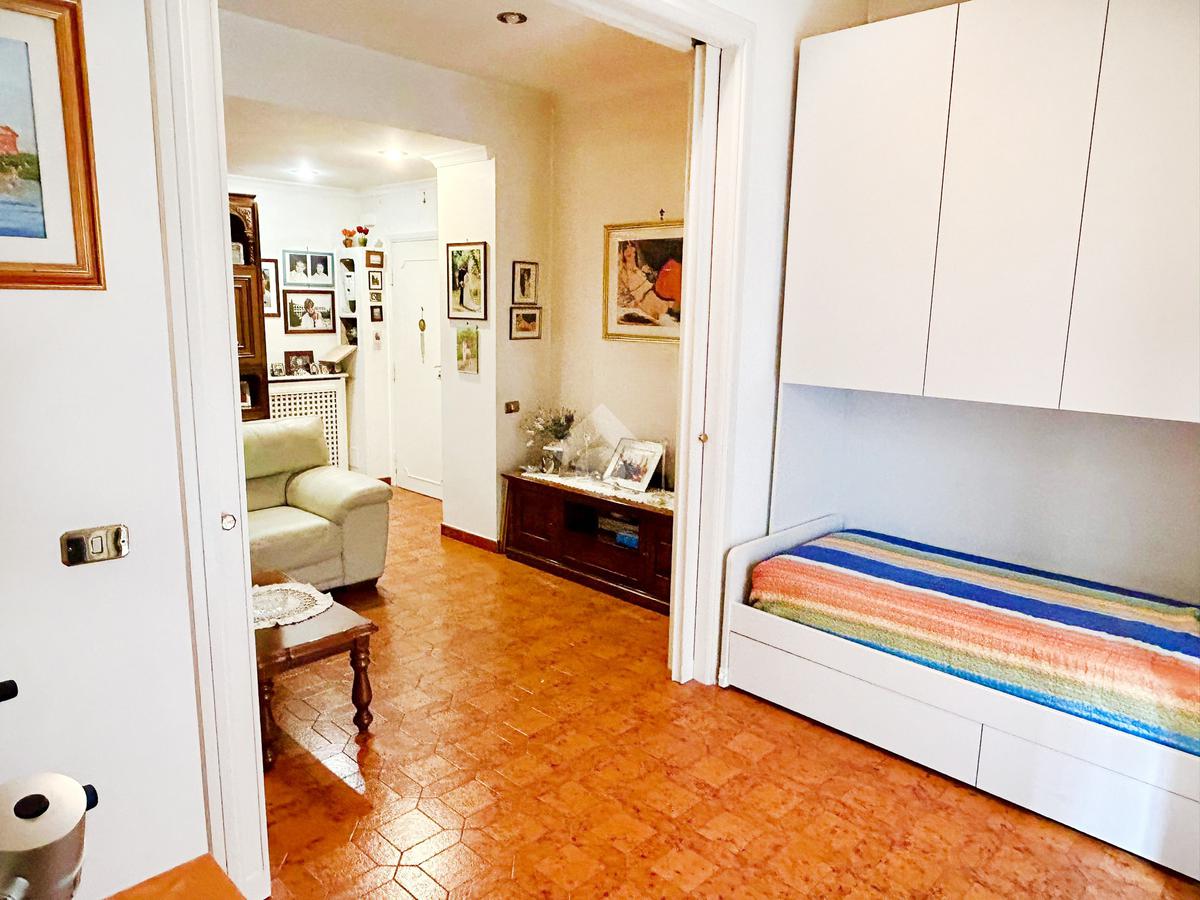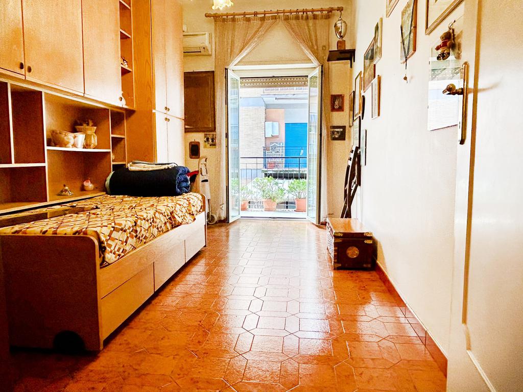 L’immobile si presenta in buono stato interno, composto da un ingresso con ampio soggiorno/ sala da pranzo, camera studio con porta a scrigno con la quale vi è la possibilità di suddividere gli ambienti, tinello con ampia cucina, balcone che serve tutta la zona giorno, disimpegno con armadio a muro, comoda camera matrimoniale e camera da letto con balcone, infine un bagno finestrato.