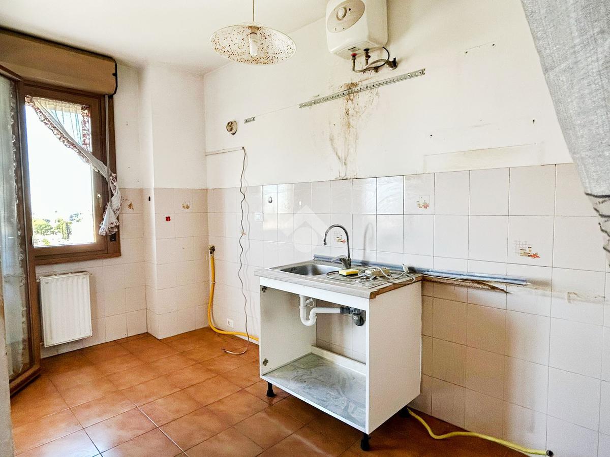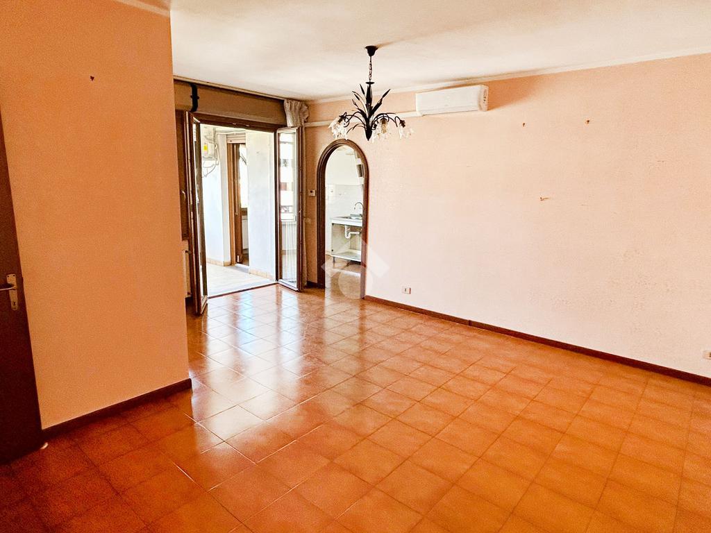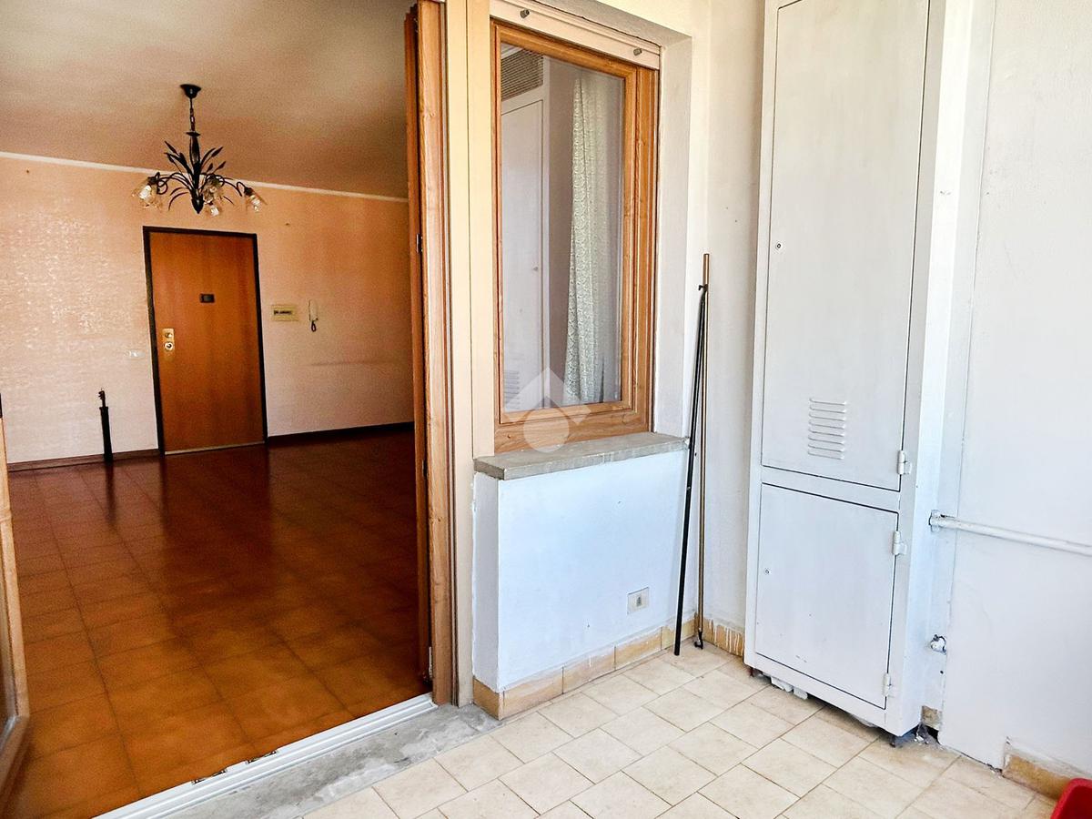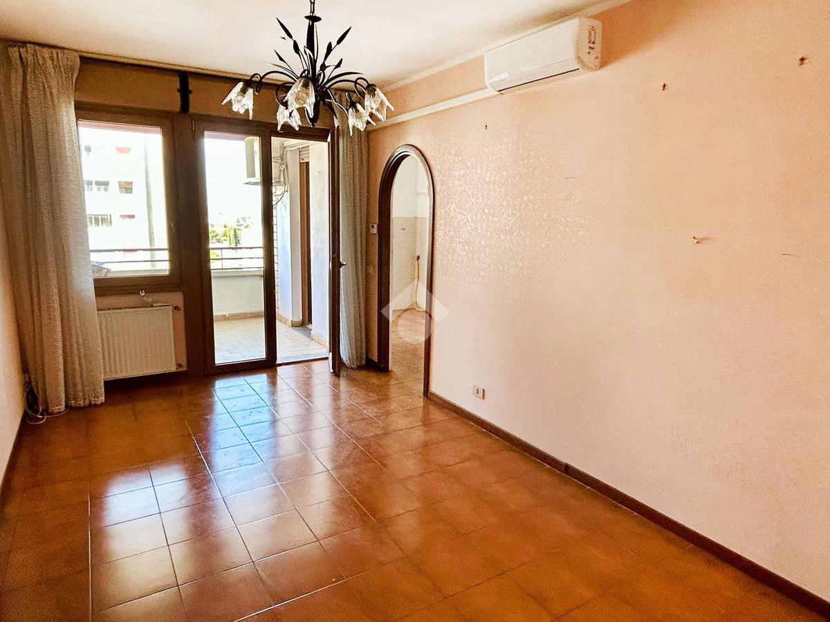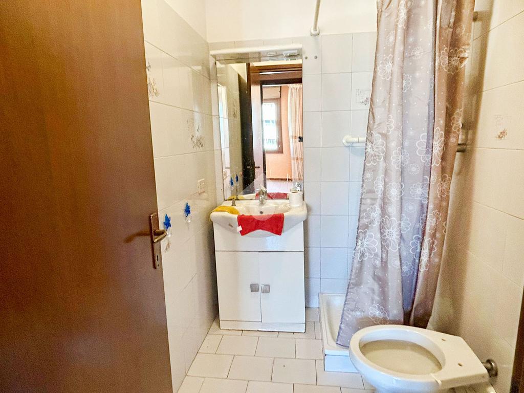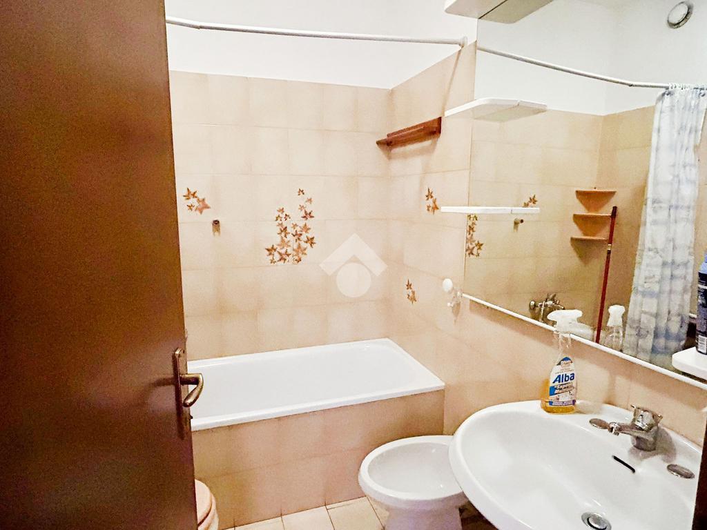 Accedendo all’ appartamento troviamo un ingresso con ampio soggiorno a vista con angolo sala da pranzo e accesso al bacone, cucina abitabile, disimpegno, camera matrimoniale, camera da letto, bagno con vasca e un secondo bagno con box doccia.
